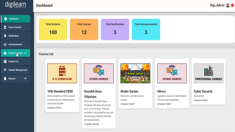 Digilearn provides content in English and Kannada, ensuring accessibility for a diverse range of students.